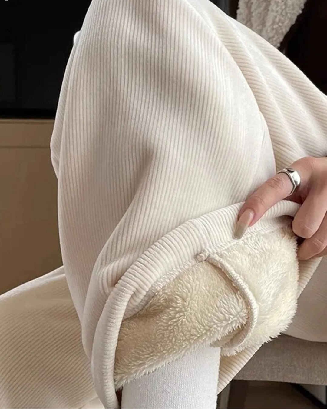 Nézzen ki stílusosan és kényelmesen a csíkos, fleece bélésű, széles szárú nadrággal